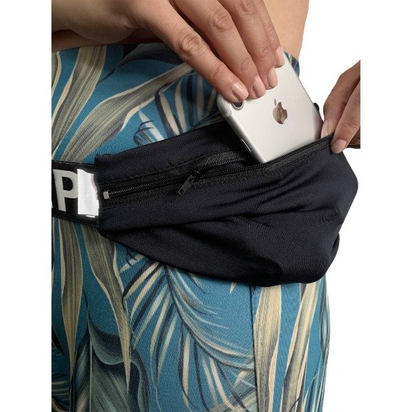 Riñonera flexible y expandible con detalles reflectivos en ambos lados con elástico regulable. Fabricada con tela recuperada de nuestras prendas.